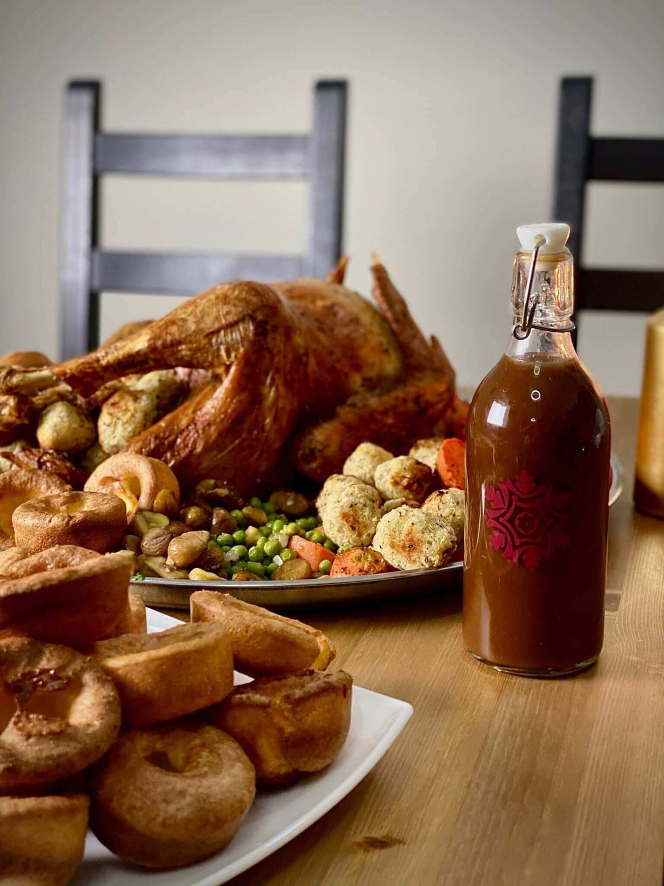 Served with 1500g of Roasted Potatoes, 1000g of Roasted Carrots, 500g of Green Peas, 16 Yorkshire Puddings, 16 Stuffing Balls, 500ml of gravy and 250ml of Cranberry Sauce,