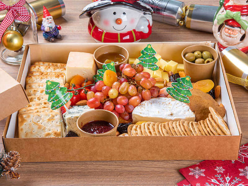 An indulgent selection of artisan cheeses, crackers, fruits, and festive nibbles — everything you need to entertain in style this Christmas. Ready to unwrap, share, and enjoy.